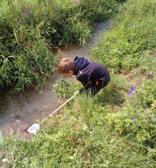 Auf der Suche nach Kleintieren mit selbst gebautem Kescher
