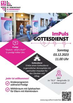 Am Sonntag, 3. Dezember, 11 Uhr, erwartet uns zum 1. Advent ein besonderer ImPuls-Gottesdienst zum Thema: „SHALOM – what’s that?“.
