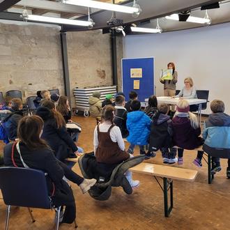 Alle Grundschulklassen und beide 5. Klassen waren der Einladung des Büchereiteams gefolgt und haben zu vorab vereinbarten Zeiten den Bürgersaal besucht um ausgewählte Geschichten zu hören.