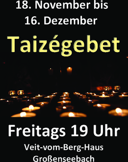 | 19.00 Uhr | Taizé-Andacht im Veit-v.-Berg-Haus, Großenseebach |