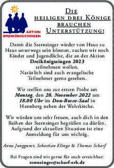 bei dieser Aktion am 06.01.2023 teilnehmen