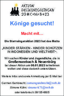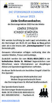 | 09.00 Uhr | Großenseebach | Eucharistiefeier mit Aussendung d. Sternsinger |