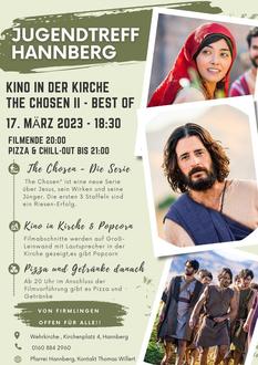 Am 17. März zeigen wir die besten Filmszenen der 2. Staffel der genialen Serie „The Chosen“ in der Kirche auf Großleinwand und geben Popcorn aus. Danach gibt es noch Pizza und Getränke im Jugendtreff-Raum mit Musik. Komme doch vorbei!