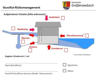 In diesem Zusammenhang bittet die Gemeinde Großenseebach um die Mithilfe ihrer BürgerInnen und Bürger. Von Starkregen und Überflutung betroffene Anwohner und Firmenbetriebe sind aufgerufen, ihre Erfahrungen zusammen mit Schadensbildern mittels eines Online-Systems (oder Papier-Formulars) zu übermitteln. Die gewonnenen Erfahrungswerte werden dann in das Sturzflut-Risikomanagement einbezogen und im Lösungskonzept berücksichtigt.