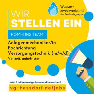 Die vollständige Stellenausschreibung finden Sie unter www.vg-hessdorf.de/jobs und Informationen zum Zweckverband gibt's unter https://wasser.vg-hessdorf.de.