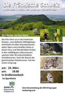 Am Samstag, 23. März, um 19 Uhr präsentiert Josef Röhrle in der Sportgaststätte in Großenseebach einen Film über Tiere und Pflanzen der Fränkischen Schweiz. Der Eintritt ist frei.