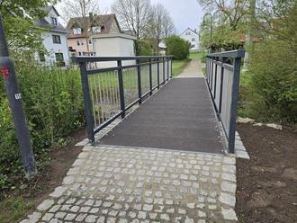 Anfang April wurde die in die Jahre gekommene Fußgängerbrücke am alten Dorfplatz vom gemeindlichen Bauhof abgerissen und einige Tage später eine neue, vorgefertigte Brücke an dieser Stelle eingehoben. Nach den Pflasterarbeiten durch den Bauhof konnte diese am 9. April bereits für den Fußgänger- und Radverkehr freigegeben werden. Mit allen Nebenkosten wie Genehmigungskosten (wasserrechtlicher Bescheid etc.) und Nebenarbeiten wie Fundament, Befestigung etc. investierte die Gemeinde ca. 77.000 Euro in die neue Brücke, damit die Bürgerinnen und Bürger am alten Dorfplatz wieder sicher die Seebach queren können. Die Brücke liegt auf dem Weg zu Kita, Krippe, Schule und Gemeinde und ist daher für zahlreiche Fußgänger und Radfahrer eine Art Hauptverkehrsader auf dem täglichen Weg zu diesen Einrichtungen. Einen ausführlichen Bericht von den Bauarbeiten mit Bildergalerie finden Sie auf der Gemeinde-Homepage unter www.grossenseebach.de/aktuelles.