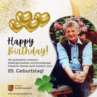 Am 24.05.2024 beging mit Friedrich Hückel einer der früheren Bürgermeister und Ehrenbürger unserer Gemeinde seinen 85. Geburtstag. Grund genug für einen Rückblick auf seine Amtszeit und seine Verdienste für die Gemeinde.