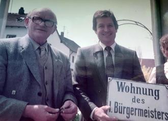 1984 kandidiert Friedrich Hückel schließlich erfolgreich zum Bürgermeister der Gemeinde. Er übernimmt den Staffelstab von Konrad Schmitt, der von 1952 an für 32 Jahre Bürgermeister war. Von seinem Vorgänger bekommt Hückel damals nicht nur die Amtsgeschäfte, sondern auch ein Schild übergeben.