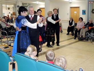 Fritz Hückel war und ist in mehreren Vereinen aktiv, etwa bei der Seebesgründer Trachtengruppe - hier 2016 beim Tanz im Marienhospital Erlangen.