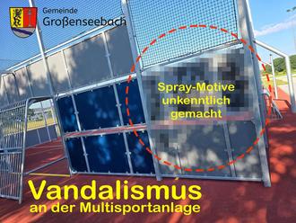 Leider wurde die erst vor wenigen Wochen eröffnete Multisportanlage Anfang Juni bereits durch Graffiti verunstaltet. Die Gemeinde hat Strafanzeige wegen Sachbeschädigung gestellt. Auch die neue Bushaltestelle am Sportplatz wurde bereits mehrfach mit ähnlichen Graffiti beschmiert und auch hier musste der Bauhof zur Entfernung der Schmierereien tätig werden.