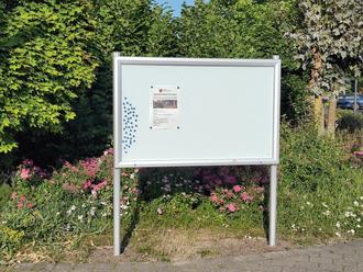 An der Mehrzweckhalle steht seit Juni ein neuer, zusätzlicher Schaukasten der Gemeinde.