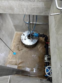 Eine Leiter führt in den mehrere Meter tiefen Brunnenschacht. Dort überwachen Sensoren alle möglichen Parameter und lösen bei Betriebsstörungen auch entsprechende Meldungen aus.