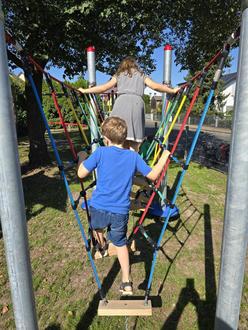 Die neue Balancierbrücke war sofort der Hit bei den Kids.