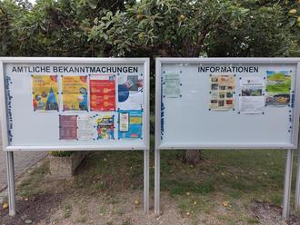 Am Fußweg des alten Dorfplatzes Ecke Schulstraße/Am Hirtenberg hat der gemeindliche Bauhof die alten, in die Jahre gekommenen Schaukästen entfernt und durch zwei neue Exemplare ersetzt. Nicht nur, dass die alten Schaukästen stark verzogen waren, wodurch vermehrt Feuchtigkeit eindrang – es fanden sich auch mehrere verlassene Wespennester in den Ecken.