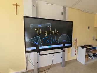 Die digitalen Tafeln sind im Prinzip große TV-Geräte, die mit einem Touchscreen und entsprechender Software ausgestattet sind. Nun sind nahezu alle Klassenräume unserer Schulen damit ausgestattet.