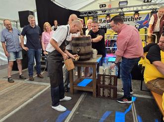 Nach nur zwei Schlägen durch den Ersten Bürgermeister war das Fass Freibier angezapft.