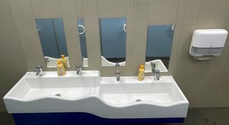 Das Mobiliar wie Waschtische ist natürlich speziell auf die Bedürfnisse der Kinder abgestimmt.