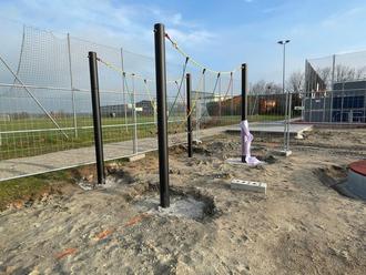 Das Gerüst der Tampenschaukel steht bereits. Das Tau auf dem die Kinder schaukeln können wird im neuen Jahr montiert.