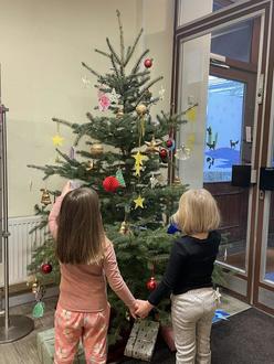 Im Eingangsbereich stand unser schön geschmückter Weihnachtsbaum.