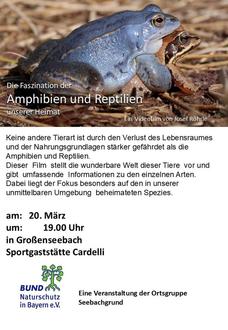 Herzliche Einladung zu einem Filmabend am Donnerstag, 20. März, mit dem neuen Naturfilm von Josef Röhrle. Der Film zeigt in eindrucksvollen Naturaufnahmen die Schönheit, Faszination und Lebensweise dieser Tiere und gibt umfassende Informationen zu den einzelnen Spezies. Beginn ist um 19 Uhr im Sportheim in Großenseebach.