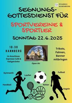 Zum Segnungsgottesdienst für Sportvereine und Sportler am Sonntag 22. Juni 2025 in der Wehranlage laden wir ganz herzlich ein!