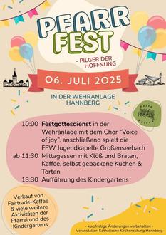 Auf einen schönen, sonnigen Tag mit vielen Gästen freut sich Ihr Sachausschuss Feste & Feiern und der Pfarrgemeinderat Hannberg!