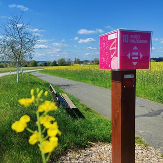 Vor rund drei Jahren wurde er feierlich eröffnet – heute ist er aktueller denn je: der „Pfad der Nachhaltigkeit im Seebachgrund“, der durch die Gemeinden Heßdorf und Großenseebach führt und im November 2022 feierlich eröffnet wurde. Entlang zweier Routen – Nord und Süd – laden 17 farbenfrohe Würfel auf Holzsäulen dazu ein, die Nachhaltigkeitsziele der Vereinten Nationen (Agenda 2030) näher kennenzulernen.