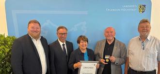 Für ihre jahrzehntelangen, außergewöhnlichen Verdienste um das kulturelle Leben im Landkreis Erlangen-Höchstadt haben die Eheleute Emilie und Manfred Meier aus Heßdorf von Landrat Alexander Tritthart das Goldene Ehrenzeichen des Landkreises erhalten. Die feierliche Übergabe fand im Beisein zahlreicher Ehrengäste und langjähriger Wegbegleiter im Juli im Landratsamt statt.