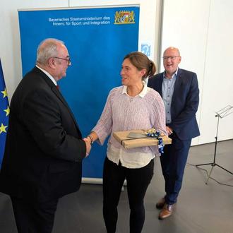 Mit Anja Willert war auch die Zweite Bürgermeisterin bei der Verleihung im Landratsamt anwesend und gratulierte dem Geehrten recht herzlich von der Gemeinde Heßdorf.