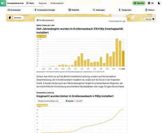 Am einfachsten rufen Sie das Klimadashboard Großenseebach über unseren Kurzlink www.grossenseebach.de/klimadashboard auf. Alternativ suchen Sie unter www.klimadashboard.de nach der PLz oder dem Ortsnamen.