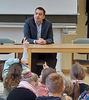 Die Kinder verfolgen begeistert die Inhalte der Stunden, da es ja um Informationen über ihr direktes Umfeld geht. Besonders gespannt waren sie auf den Besuch im Rathaus. Herr Ettinger vom Bauamt führte unsere Klassen quer durch alle Ämter und Büros. Die Damen vor Ort berichteten von ihren Zuständigkeiten und versuchten, diese durch kindgerechte Beispiele anschaulich zu machen. Unser erster Bürgermeister, Herr Christian Keck, nahm sich viel Zeit für die jungen Gemeindemitglieder. Zuerst zeigte er uns im Rathaus sein Büro. Später stellte er sich eine volle Stunde in der Schule den zahlreichen Fragen der interessierten Kinder. Wer weiß, vielleicht kommt ja ein zukünftiger Bürgermeister aus den Reihen der derzeitigen 4. Klassen.
