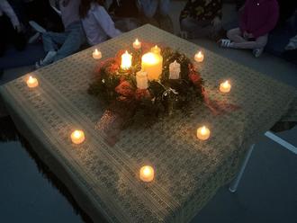 Am Mittwoch kamen dann alle Kinder der 1. und 2. Klassen in der stimmungsvoll beleuchteten Schmellerhalle für die Adventsandacht zusammen.