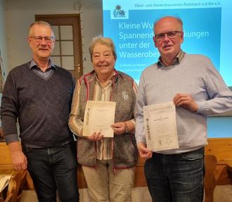 Vor dem Vortrag standen aber noch zwei Mitglieder im Mittelpunkt, die für ihre langjährige Vereinszugehörigkeit geehrt wurden.