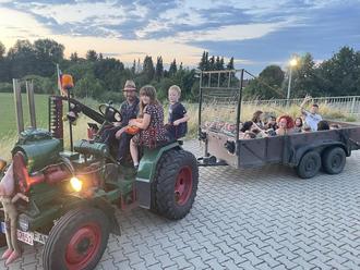 Nach diesem Erlebnis wurden die Kinder zusammen mit einigen Eltern von Stefan Tschirn und seinem Bulldog wieder zurück zum Zeltplatz gefahren. Das hat die einstündige Wanderung nochmal perfekt abgerundet.