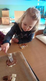 Nach einer Kinderkonferenz mit den Vorschulkindern -mit Unterstützung des Kindergartenteams- entstanden verschiedene Projektgruppen. Diese teilten sich in ein Kreativ-, Verkaufs-, Back-, Sing- sowie ein Verpflegungsteam auf.