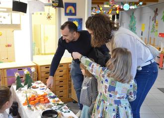 Zudem gab es auch einen kleinen Weihnachtsmarkt, der mit viel Engagement und Kreativität von den Sternschnuppenkindern vorbereitet und umgesetzt wurde. Es gab eine große Auswahl an Selbstgemachten, kleinen Geschenken und Köstlichkeiten. Ein Highlight für die Verkäufer/innen war wieder der diesjährige Besuch von Bürgermeister Christian Keck. Er bekam einige Wochen zuvor bereits eine Einladung der Vorschulkinder, welche er dankend angenommen hat. Darüber haben sich die Kinder sehr gefreut.
