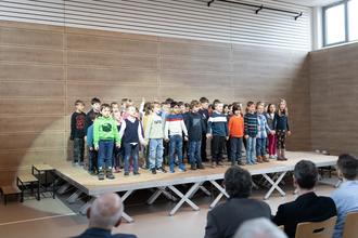 Die Rohrbacher Grundschüler gaben bei der Eröffnungsfeier der Schmellerhalle mehrere Lieder zum Besten.