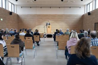 1. Bürgermeister Christian Keck freute sich wie auch die anderen Redner über die Eröffnung der sanierten Schmellerhalle.