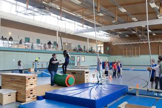 Schwingen, Klettern, Krabbeln, Hüpfen, Rollen und Laufen – unter dem Motto „Bewegung macht Spaß" fand am 28. März 2025 die Knaxiade bei der DJK-Schulkinder-Turngruppe statt. Die Kids hatten die Möglichkeit, sich in einer großen Bewegungslandschaft auszutoben. In der Turmberghalle war ein wahrer Abenteuerspielplatz aufgebaut, der mit verschiedenen Stationen gefüllt war. An jeder Station gab es eine neue Herausforderung, die mit viel Freude und Enthusiasmus gemeistert wurden. Mit Begeisterung krabbelten die Kinder durch Tunnel, transportierten Bälle mit Stäben oder Füßen und schwangen an Seilen wie Tarzan durch die Turmberghalle. Die Atmosphäre war voller Energie und Freude, die man den jungen Sportlern ansehen konnte.