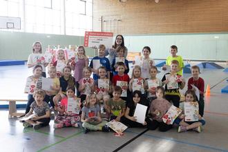 Nach all‘ den aufregenden Aktivitäten gab es dann einen besonderen Moment für alle Teilnehmer. Jedem Kind wurden eine Medaille und eine Urkunde verliehen, die den tollen Nachmittag und die Bewegung würdigten. Die strahlenden Gesichter der Kinder waren unbezahlbar. Es war ein unvergesslicher Tag voller sportlicher Aktivitäten und Spaß, der den Kindern sicherlich noch lange in Erinnerung bleiben wird!