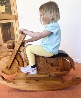 Große Begeisterung herrscht seit einiger Zeit in der Kinderkrippe Sonnenschein: Die Kinder durften sich über ein ganz besonderes Geschenk freuen – ein wunderschönes, von Gerhard Pfister selbst gebautes Wipp-Motorrad aus Holz, das nun bei uns in der Krippe für jede Menge Spaß sorgt.