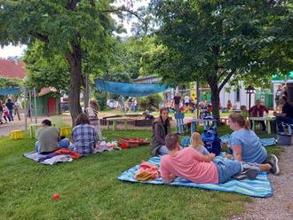 Die Gäste hatten die Möglichkeit, es sich auf ihren Decken oder den bereitgestellten Sitzgelegenheiten, ob im Schatten oder in der Sonne, bequem zu machen. Dort konnte man ausgiebig miteinander Ratschen und auch neue Kontakte knüpfen.