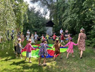 Ein Schuljahr musikalische Früherziehung ging Ende Juli mit einem gemeinsamen Auftritt am „Drachenbaum“ zu Ende. Bei schönstem Sommerwetter interpretierten die Vorschulkinder zwei Stücke indigener Völker. Zuschauer waren Familien und Freunde der Nachwuchsmusiker, die es sich auf Picknickdecken gemütlich gemacht hatten.