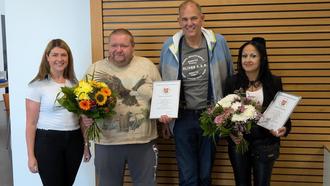 Von links: Personalrätin Anne Schmidt, Mathias Geier, Bürgermeister Thomas Fischer, Manuela Mucha