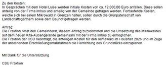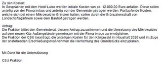 | 8. | Antrag Bezuschussung Klimawald der Fraktion CSU |