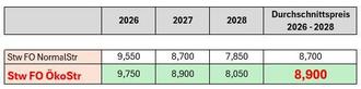 Das günstigste Angebot (für den 3-jährigen Vertrags-Zeitraum von 2026 - 2028) wurde von den Stadtwerken für einen Durchschnittspreis von 8,7 Cent/kWh abgegeben.