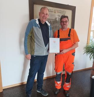 Wir gratulieren, Herrn Reiner Bieselt, im Namen der Gemeinde Möhrendorf, der Verwaltung und der gesamten Bauhofmannschaft zu seinem 25-jährigen Dienstjubiläum Wir danken Ihm herzlich für seine Treue, seinen stets vorbildlichen Einsatz und seinem Teamgeist.
