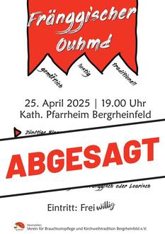 schweren Herzen haben wir uns entschlossen, den Fränggischen Ouhmd für dieses Jahr abzusagen.