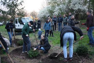 Seit 1993 ist an der Holderhecke bereits ein kleiner Wald aus über 200 Bäumen entstanden. Doch war dort unter den Fichten der Borkenkäfer unterwegs, auch Hitze und Trockenheit hatten ihren Tribut gefordert, so dass jetzt Douglasien gepflanzt wurden.